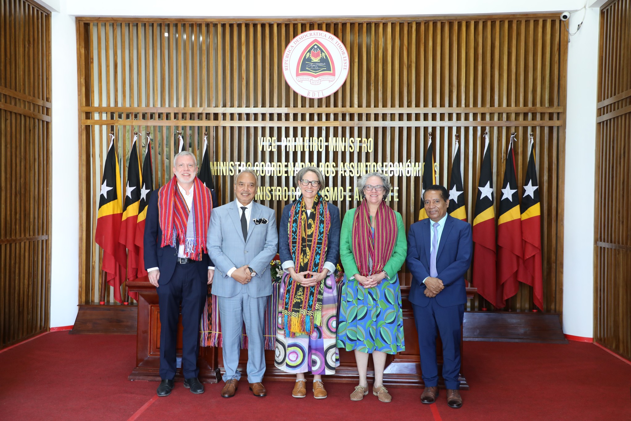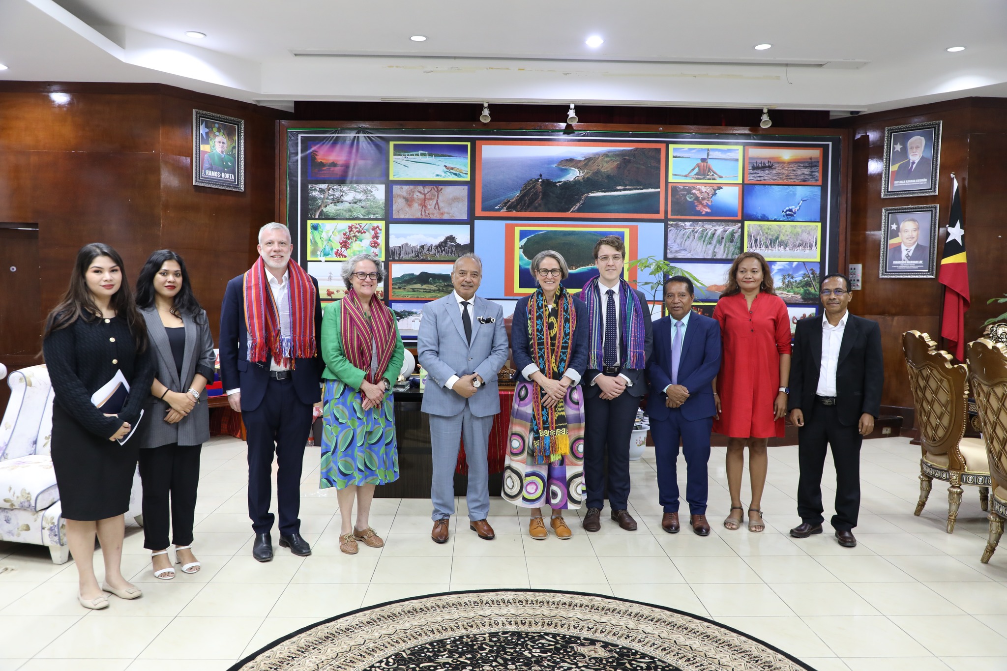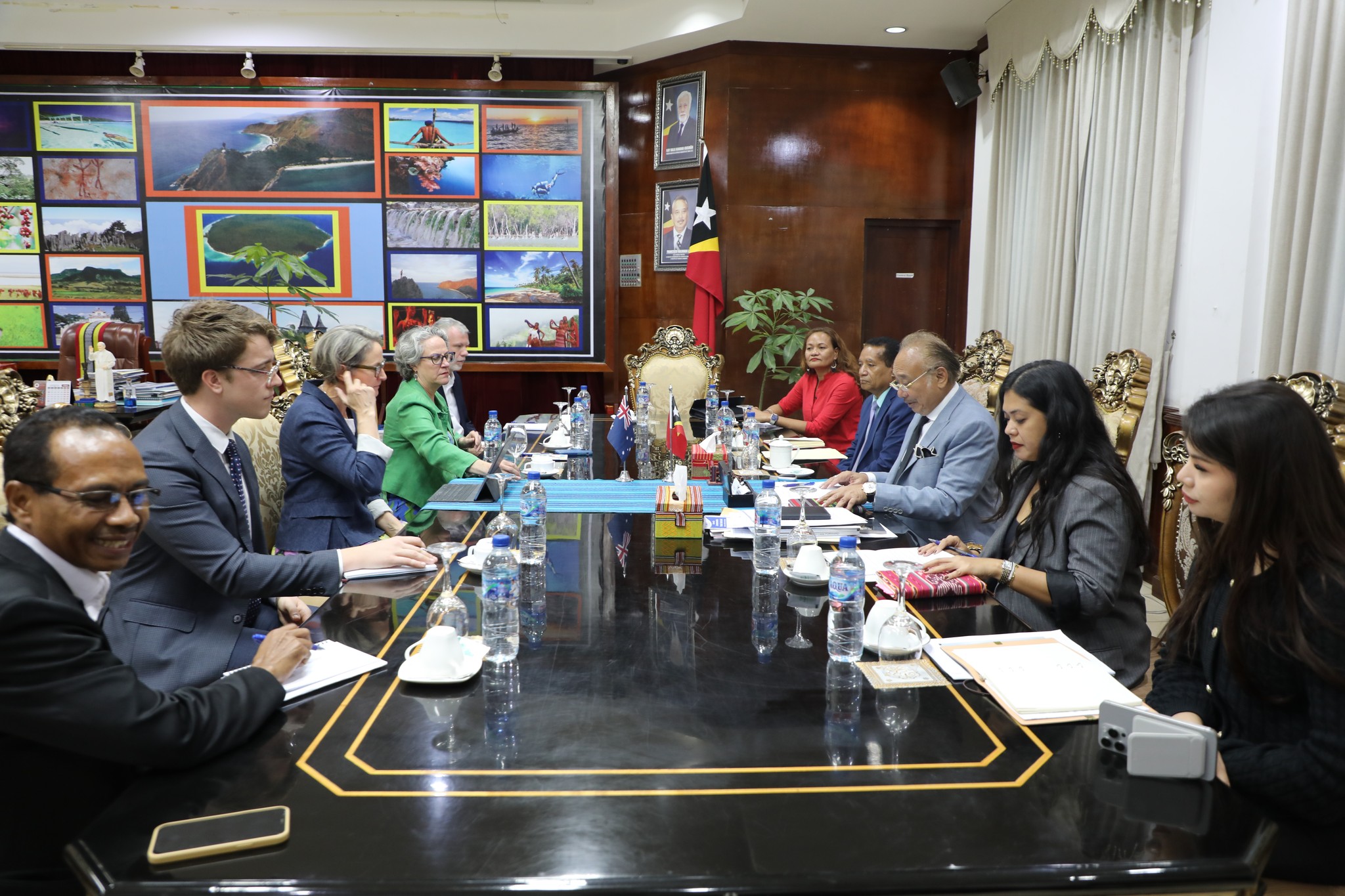 Austrรกlia nia Embaixadora ba Mudansa Klimรกtika ho nia ekipa sira akompaรฑa husi Embaixadora Austrรกlia ba Timor-Leste, Caitlin Wilson inklui Enviadu Espesiรกl no Embaixadรณr Timor-Leste ba Asuntu Klimรกtiku Adรฃo Soares Barbosa.