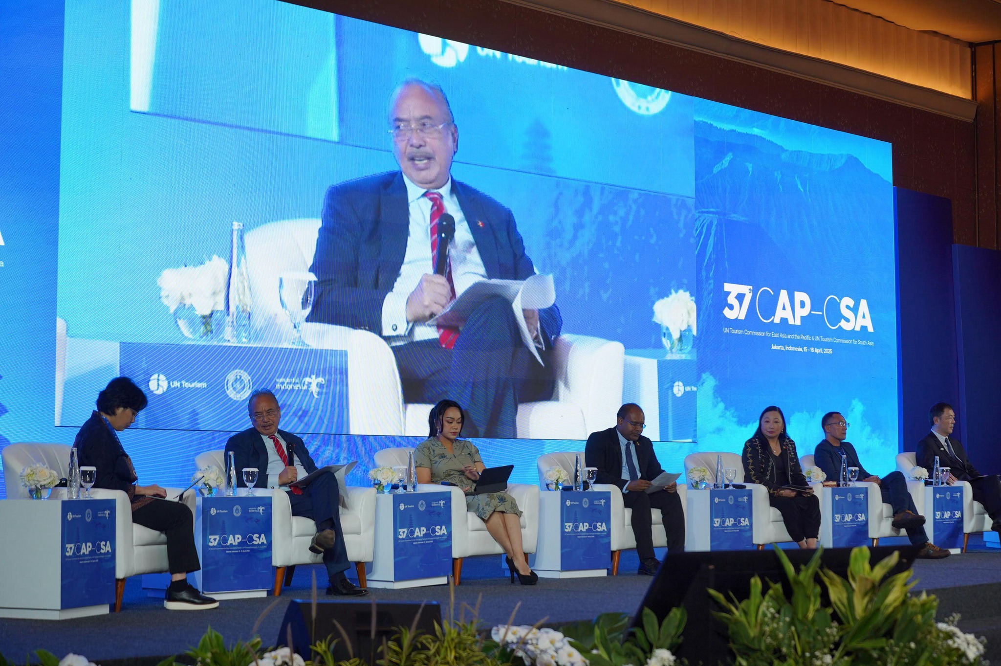Sua Exselensia Vise โ€“ Primeiru Ministru no Ministru Koordenadรณr ba assuntu Ekonรณmiku, Ministru Turizmu no Ambiente, Datoโ€™ Seri Francisco Kalbuadi Lay partisipa no sai panelista iha konferรฉnsia rejionรกl ONU nian kona-ba turizmu iha Indonรฉzia iha loron 14 Abril 2025.