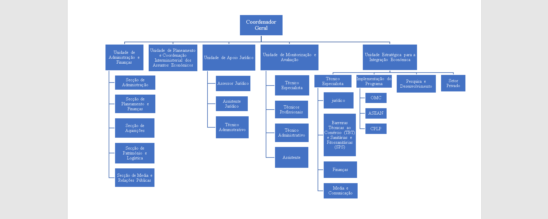 Sobre a Organização do Gabinete do Ministro Coordenador dos Assuntos Económicos